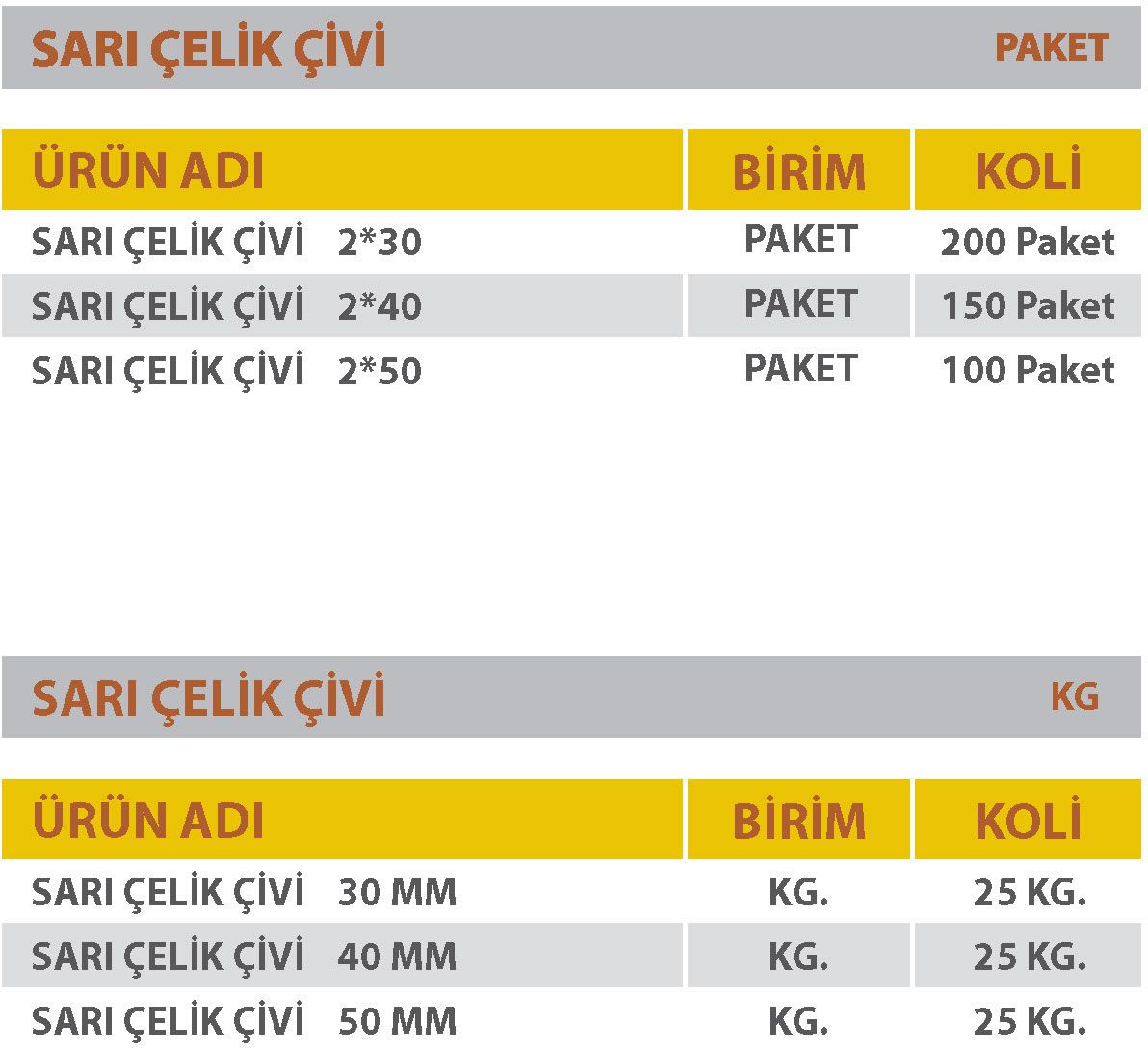 SARI ÇELİK ÇİVİ